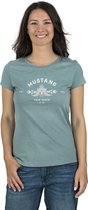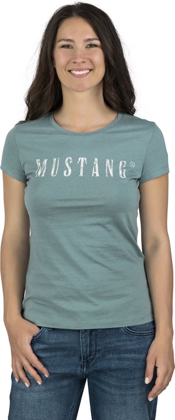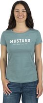 Mustang T-Shirt Femme Alexia C Logo Slim Fit Turquoise L Col Rond Adultes T-shirt Basic à manches courtes et col rond en 100% coton