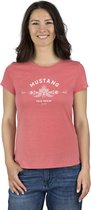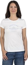 MUSTANG T-shirt Femme Col Rond Col Rond Basic Slim Manches Courtes Logo Imprimé Chemise d'été 100% Katoen Wit Blauw Vert Rouge S M L XL XXL