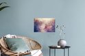 Muursticker Aquarelle Abstraite - Oeuvre abstraite réalisée à l'aquarelle avec des taches violettes et brunes - 30x20 cm - film adhésif autocollant - sticker mural repositionnable