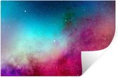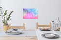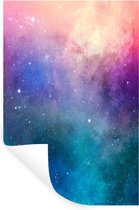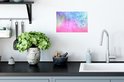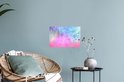 Muursticker Aquarelle Abstraite - Oeuvre abstraite réalisée à l'aquarelle et rose avec des couleurs bleu et jaune - 30x20 cm - film adhésif autocollant - sticker mural repositionnable