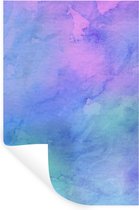 Muursticker Aquarelle Abstraite - Œuvre abstraite réalisée à l'aquarelle et rose avec des couleurs bleues - 60x90 cm - film adhésif autocollant - sticker mural repositionnable