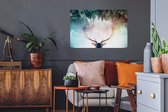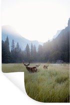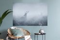 Muursticker Cerf - Cerf dans la brume - 90x60 cm - film adhésif autocollant - sticker mural repositionnable