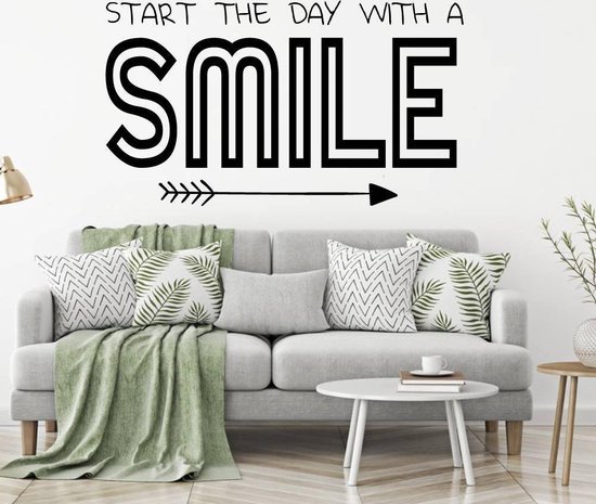 Muursticker Commencez la journée avec un Smile - Zwart - 80 x 44 cm - Muursticker4Sale