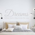 Muursticker Dreams Follow Them They Know The Way - Gris clair - 160 x 67 cm - Sticker mural