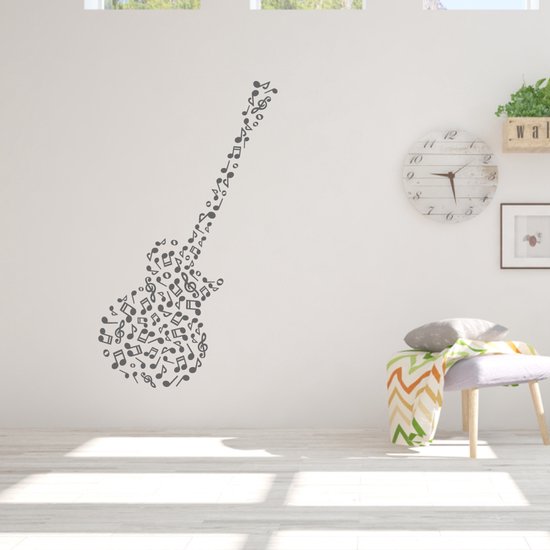 Ce fantastique sticker mural musical d'une guitare avec des notes de musique fait battre plus vite le cœur des mélomanes ou de ceux qui jouent de cet instrument. Choisissez votre couleur de guitare préférée et décorez votre maison de manière musicale. Cet autocollant de wallsticker4sale vous rendra heureux.