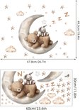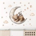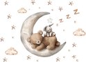 Muursticker Ours endormi et Lapin sur Lune - 68x50cm - Chambre de bébé - Chambre enfant - PVC autocollant - garçon - fille - aquarelle