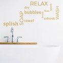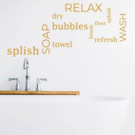 Vous pouvez insuffler une nouvelle vie dans la salle de bain avec ce sticker mural. Cet autocollant mural contient toutes sortes de mots liés à votre salle de bain, tels que serviette, sèche, bulles et savon. De cette façon, vous pouvez décorer facilement et rapidement un mur nu dans votre salle de bain. Placer un autocollant mural peut garantir que la salle de bain est dotée d'un beau nouveau look en quelques minutes. Vous pouvez commander l'autocollant mural en différentes couleurs et tailles afin que l'autocollant s'intègre bien au reste de votre salle de bain.