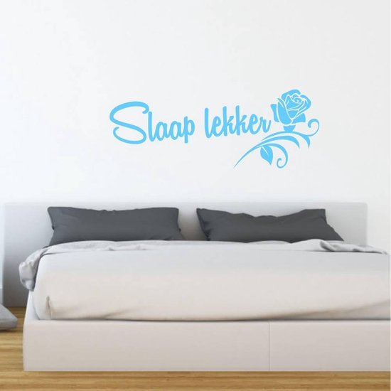 Muursticker Sleep Well with Rose - Bleu clair - 120 x 43 cm - Chambre avec texte néerlandais - Sticker mural