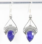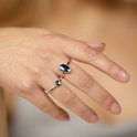 My Bendel Bague torsadée argentée avec goutte de pierre de cristal bleue - Bague argentée avec bord torsadé et pierre de verre bleue - Avec emballage cadeau luxueux