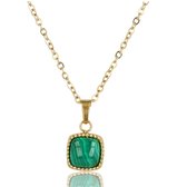 My Bendel - Collier avec pendentif carré en jaspe Picture - Collier avec Picture carré en pierre précieuse en jaspe photo - Avec emballage cadeau de luxe
