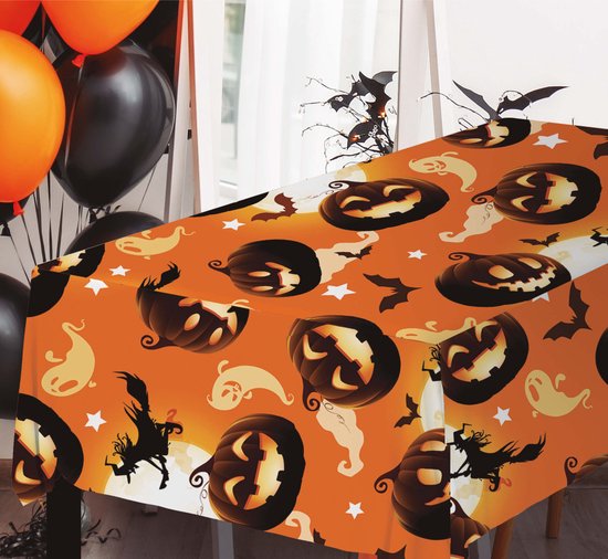 Nappe de fête à thème Halloween/horreur - 2x - citrouilles effrayantes - orange - plastique - 137 x 274 cm