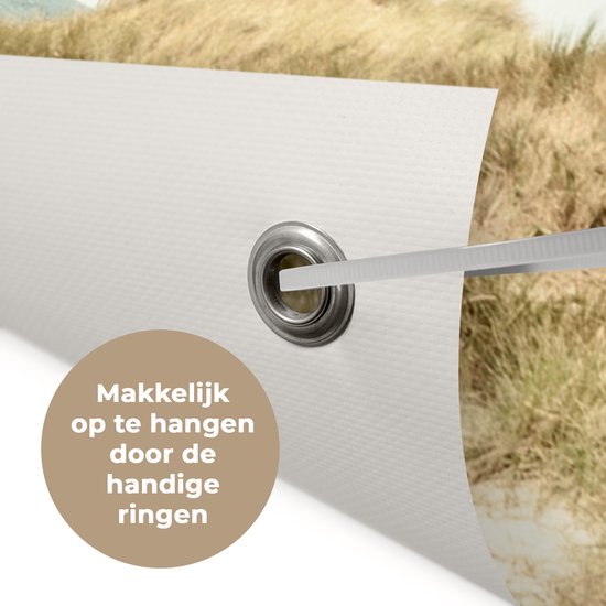 Les affiches de jardin, également appelées toile de jardin, sont des affiches spécialement adaptées pour être suspendues à l'extérieur. Cette nappe de jardin peut donc prendre une raclée. La voile Bisonyl a été utilisée pour cette affiche extérieure. Cette voile est une bâche enduite avec une belle finition. L'affiche de jardin est résistante aux UV, elle ne se décolore donc pas au soleil. Plusieurs anneaux ont été placés dans la toile pour que vous puissiez facilement l'accrocher! Le tissu peut résister aux différentes conditions météorologiques et durera au moins 3 ans.