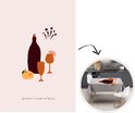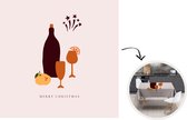 Bouteille de vin avec verres et fruits. Les lettres épelent la citation "Joyeux Noël".