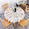 - DESIGN ÉLÉGANT : La nappe ronde présente d'élégantes feuilles vertes brodées sur du lin en coton avec des pompons, ce qui crée un style simple et moderne et se marie bien avec la décoration de votre maison.