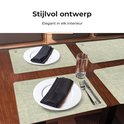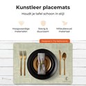 Fabriqués en cuir artificiel de haute qualité, ils sont hydrofuges, de sorte que les liquides renversés n'ont aucune chance. De cette façon, votre table reste toujours soignée et impeccable. De plus, nos sets de table ont un fond antidérapant, afin qu'ils restent bien en place pendant les repas. Cela signifie moins de dégâts et plus de confort en mangeant.