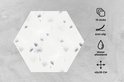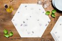 Les sets de table ont une forme hexagonale et sont en vinyle. Il est facile à nettoyer, par exemple avec un chiffon humide. De plus, les patins sont pourvus d'une couche antidérapante. En conséquence, ils ne se déplacent pas pendant l'utilisation. Un autre avantage est que les sets de table sont résistants à la chaleur. Vous pouvez donc y poser des casseroles chaudes en toute tranquillité !