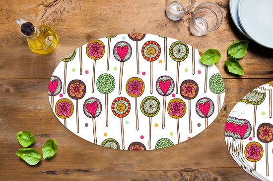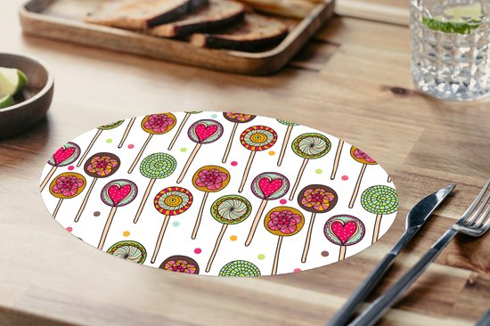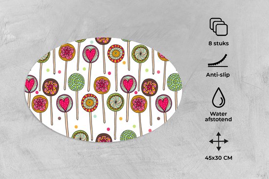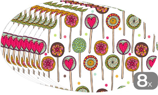 Napperons de table ovales - Dessous de verre - Sets de table ovales - Motif - Sucette - Hartjes - Snoep - 8 pièces