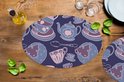 Set de table ovale - Motif - Thee - Tasse - Théière - Dessous de table