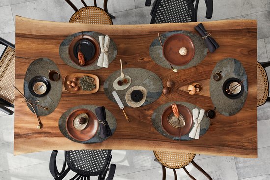 Les sets de table ont une forme ovale et sont en vinyle. Il est facile à nettoyer, par exemple avec un chiffon humide. De plus, les patins sont pourvus d'une couche antidérapante. En conséquence, ils ne se déplacent pas pendant l'utilisation. Un autre avantage est que les coussinets ovales sont résistants à la chaleur. Vous pouvez donc y poser des casseroles chaudes en toute tranquillité !
