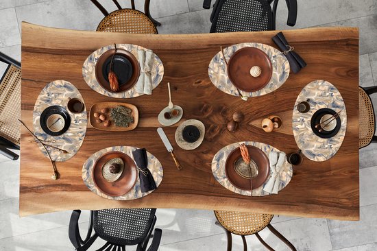 Les sets de table ont une forme ovale et sont en vinyle. Il est facile à nettoyer, par exemple avec un chiffon humide. De plus, les patins sont pourvus d'une couche antidérapante. En conséquence, ils ne se déplacent pas pendant l'utilisation. Un autre avantage est que les coussinets ovales sont résistants à la chaleur. Vous pouvez donc y poser des casseroles chaudes en toute tranquillité !
