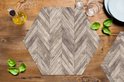 Les sets de table ont une forme hexagonale et sont en vinyle. Il est facile à nettoyer, par exemple avec un chiffon humide. De plus, les patins sont pourvus d'une couche antidérapante. En conséquence, ils ne se déplacent pas pendant l'utilisation. Un autre avantage est que les sets de table sont résistants à la chaleur. Vous pouvez donc y poser des casseroles chaudes en toute tranquillité !