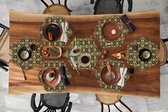 Napperons hexagon - Sets de table - Set de table hexagone - Fleurs - Motifs - Zwart - 10 pièces