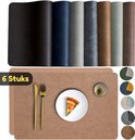 Ces sets de table élégants sont fabriqués en cuir PU de haute qualité et respectueux de l'environnement et sont réversibles - également parfaits pour être utilisés comme tapis de souris. Ils sont imperméables, résistants à l'huile et faciles à nettoyer avec un chiffon humide. Grâce à leur flexibilité, ils peuvent être enroulés pour gagner de la place. Mesurant 30 x 45 cm, ils offrent une protection fiable pour la surface de la table et ajoutent un look moderne à la cuisine, à la salle à manger, au bureau ou à l'hôtel. Idéal pour un usage quotidien et facile à entretenir