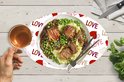 Motif de la Saint-Valentin avec le mot répété « amour » entouré de cœurs.