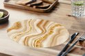 Structure en marbre composée de lignes dorées et beiges.