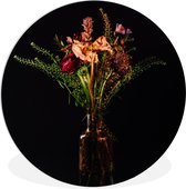 WallCircle - Wall Circle - Wall Circle Indoor - Carafe - Fleurs - Nature Morte - 60x60 cm - Décoration murale - Peintures Ronds