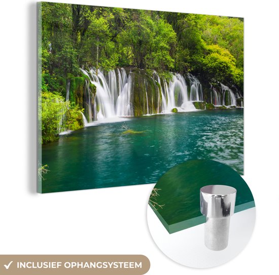 Nature verdoyante au-dessus des chutes d'eau dans le parc national d'Erawan Plexiglas 120x80 cm - Tirage photo sur verre (décoration murale en plexiglas)