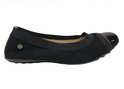 ballerine en faux suède noir avec bout et talon noir verni comme accent