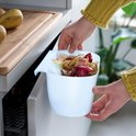- ACCROCHAGE : Suspendez simplement les conteneurs sur les portes ou les tiroirs de vos armoires de cuisine sous le bord du comptoir. Le seau reste en place et ne bouge pas. Cela facilite la collecte des déchets de cuisson.