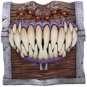 "Parfois, un coffre n'est qu'un coffre, mais ne pariez pas dessus." - La 3ème règle de survie au donjon de X le Mystique. Gardez vos dés à l'abri de toute menace avec cette boîte à dés magnifiquement conçue ! Les mimiques sont des prédateurs métamorphes capables de prendre la forme d'objets inanimés pour attirer les créatures vers leur perte. Dans les donjons, ces créatures rusées prennent le plus souvent la forme de portes et de coffres, ayant appris que de telles formes attirent un flux constant de proies. Dotée de six yeux orange brûlé et d'un ensemble de crocs pointus, cette imitation se cache sous la forme d'un coffre aux bords argentés. Ouvrez le couvercle pour révéler une bouche violette lustrée où vous pourrez ranger vos dés et cacher vos trésors ! Coulée dans la meilleure résine avant d'être peinte à la main par des experts, cette pièce est un must pour tout maître du donjon.