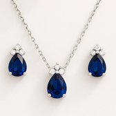 Parure de Bijoux en Argent Set avec Boucles d'oreilles Zircone Blauw - Set de Zircone de Couleur Blue - Amona Jewelry