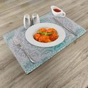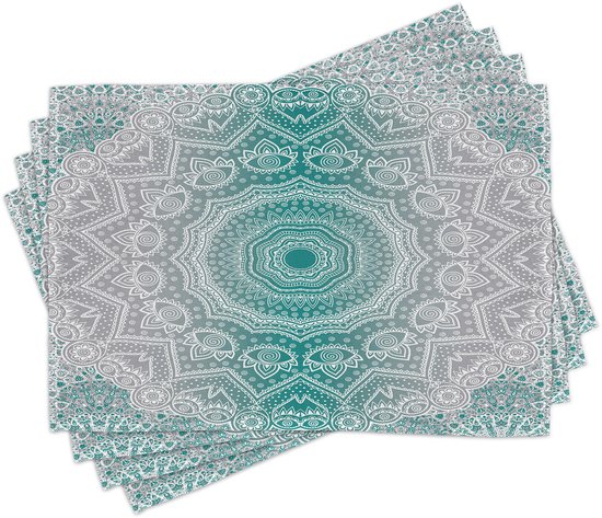 New de 4 Set de table à manger motif mandala ombré Grijs et bleu vert, tissu lavable avec envers antidérapant