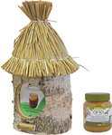 Nichoir / mangeoire / maison de beurre de cacahuète bois de bouleau avec toit de paille 36 cm y compris beurre de cacahuète oiseau - Mangeoire à oiseaux
