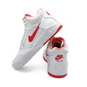 La tige est composée de cuir de haute qualité et de matériaux synthétiques, ce qui garantit durabilité et aspect luxueux. Des perforations stratégiquement placées assurent la ventilation, tandis que le col et la languette rembourrés offrent un soutien et un confort supplémentaires. Le Swoosh rouge et les détails noirs subtils sur le talon et la semelle confèrent à la chaussure un look sportif et authentique qui rappelle immédiatement les années de gloire du basket-ball.