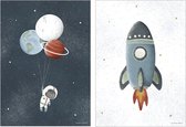 No Filter - Affiches chambre enfants - 3 pièces 30x40 cm - Chambre Garçons - Espace - Espace - Astronaute - Lune