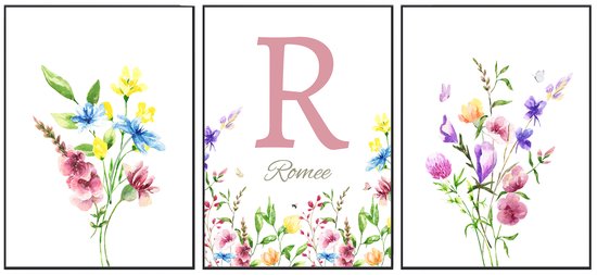 Apportez une touche de douceur et d'élégance à la chambre de bébé ou de fille avec ce lot de 3 affiches fleuries. L'ensemble comprend trois impressions uniques avec de délicates illustrations florales, dont l'une peut être personnalisée avec un naam. Un cadeau parfait pour une naissance, une baby shower ou une chambre d'enfant