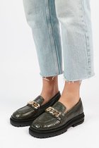 Mocassins en cuir noir avec détail argenté par Manfield. Ces mocassins sont en cuir et nous vous recommandons donc d'entretenir et de protéger ces mocassins avec le Collonil Carbon Pro. Ces mocassins ont une semelle épaisse avec un talon de 2 cm de haut. Les détails argentés sur l'avant-pied apportent ce petit plus.