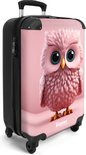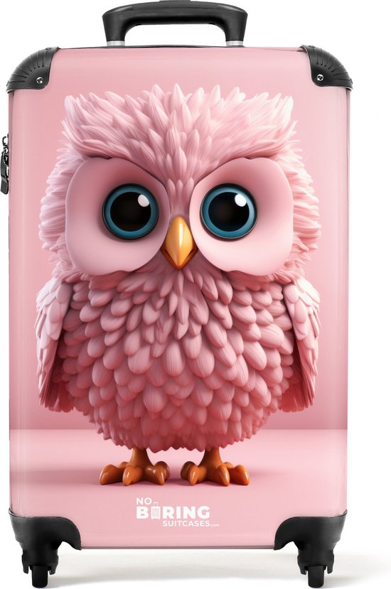 NoBoringSuitcases.com® - Valise cabine enfant Hibou de dessin animé rose sur fond rose - Bagage à main - Valise de voyage pour fille - Valise chariot - Valises 55x40x20 cm - 55x35x25 cm