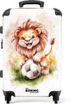 NoBoringSuitcases.com® - Grande valise enfant Lion avec ballon bleu - Bagage - Valise de voyage - Valise chariot - Valises 67cm