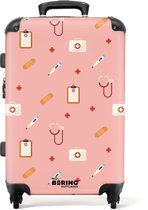 NoBoringSuitcases.com® - Valise enfant - Valise trolley enfant pour garçons et filles - Symboles médicaux sur fond rose - Valise Bagage à main légère - Valise trolley enfant - Valise trolley à roulettes - Convient aux formats 55x40x20 et 55x35x25