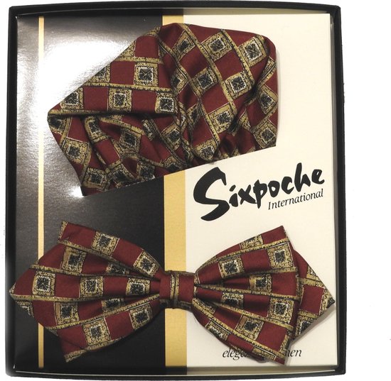 noeud en satin avec pochette.Couleurs rouge et beige La pochette de costume est pré-pliée et peut être portée de 2 façons.
