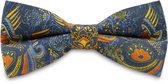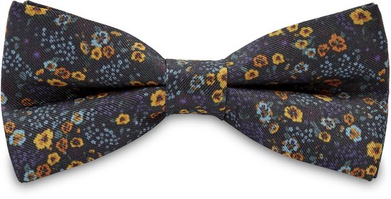 Un noeud papillon bleu marine foncé décoré d'accents floraux jaunes, bleus et violets. Une subtile déclaration de mode et une pièce magnifique à ajouter à votre arsenal d'accessoires Boho.