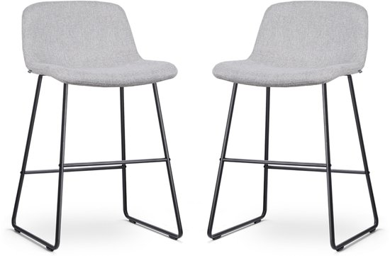Nolon Nino-Mats Tabourets de bar Set de 2 Gris Clair - Piètement Zwart - Hauteur d'assise 65 cm - Tissu - Pour îlot de Cuisine