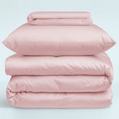 Nordic Paradise - Set Housse de Couette Luxe en Satin de Katoen - 200x220 cm + 2 taies d'oreiller 50x60 cm + Hoeslaken 160x200cm - Rose tendre