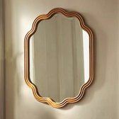 Miroir de style Art Deco . Ce miroir ajoute du caractère à n'importe quelle pièce dans laquelle il est accroché. Le miroir a un cadre incurvé de style Art Deco et est coloré dans une belle teinte cuivrée. C'est un accent décoratif fonctionnel. Grâce aux crochets au dos, vous pourrez facilement l'accrocher et décorer votre mur. Détails : Type de produit : miroir mural Style: Rétro Couleur : Koper Type de matériau : Glas Matériau principal : Glas Overig matériau : MDF Forme : Hémisphère Finition : Polie Orientation : Portrait Dimensions : Profondeur : 2 cm Largeur : 60 cm Hauteur : 89cm Poids : 9 kg L'offre comprend : 1 x Miroir Caractéristiques principales : Avec crochets à l'arrière pour un montage mural, Perfect pour la chambre et le salon, Style rétro, Pièce d'accent Elegant , Haute qualité, Précision faite à la main Informations sur l'assemblage : Geen assemblage requis Conseils d'entretien: Glas: 1.Nettoyez avec un détergent doux ou un nettoyant pour vitres et un chiffon doux. Puis bien sécher 2.N'utilisez pas de produits de nettoyage abrasifs. Ceux-ci peuvent endommager la surface du verre.