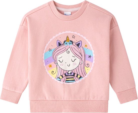 Pull rose avec doublure chaude, avec un imprimé d'une fille à paillettes.